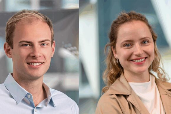 A new neuroscience study, led by Kempner Graduate Fellow Colton Casto (left), and co-authored by Kempner Research Fellow Greta Tuckute (right), systematically examines parts of the cerebellum that contribute to language processing in the human brain.